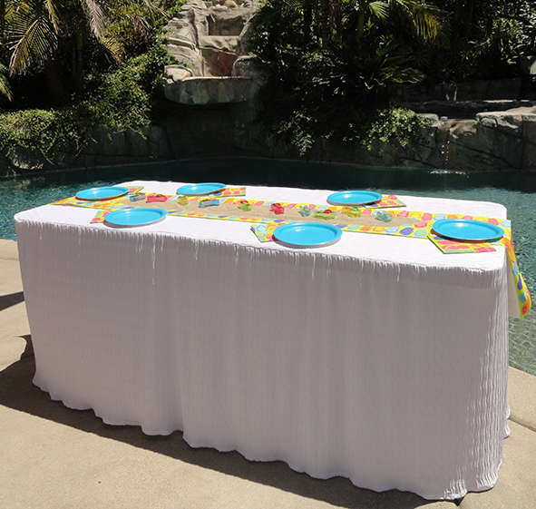A solution based table cloth made to fit folding tables.